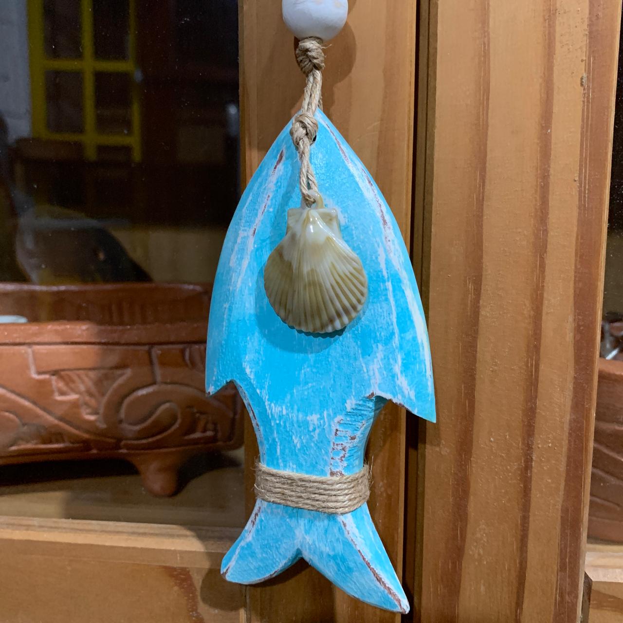 Pingente de peixe em madeira, medindo 8x15cm na cor Azul.